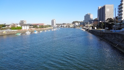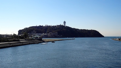 車の往来の多い国道134号線を地下道で渡り、片瀬橋から江ノ島を望みます。江ノ島へ足を延ばしてもよかったのですが、今日の目的は江ノ電ですから(笑)、ここで引き返して江ノ島駅を目指します。