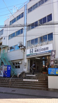 湘南モノレールの湘南江の島駅です。江ノ島への鉄路でのアプローチは、小田急線(片瀬江ノ島駅)・江ノ電(江ノ島駅)・湘南モノレール(湘南江の島駅)の三つの選択肢があるのです。