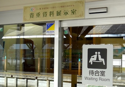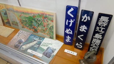 ホーム上の待合室に併設されている貴重資料展示室には301号が引退時につけていたヘッドマークや100形(タンコロ)が実際につけていた行き先表示板、内務大臣からの特許状などが展示されています。
