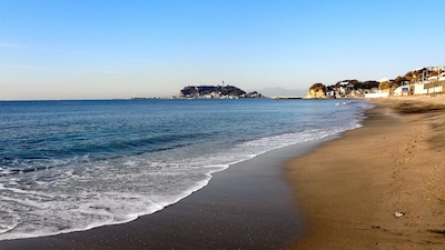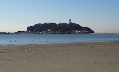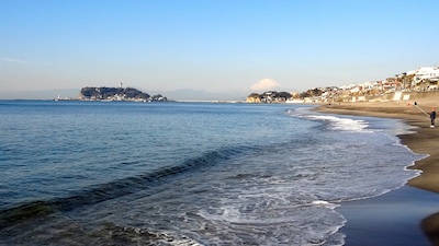 七里ヶ浜からは江ノ島はもちろん富士山もくっきりと見えてます。