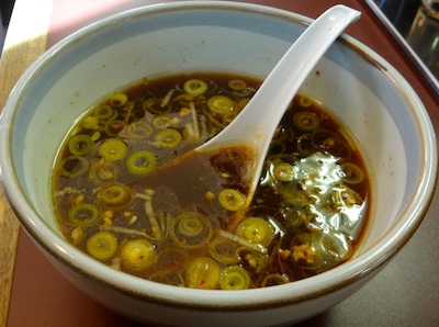 お店に入ってカウンターに座り、もりそばを注文しました。しばらくしてから出てきたもりそばは、甘酸っぱい独特のつけ汁にコシのある太麺の相性がよく美味しくいただきました。