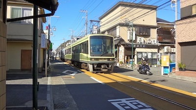 その近くには江ノ電もなかと電車の店舗で有名な扇屋があります。