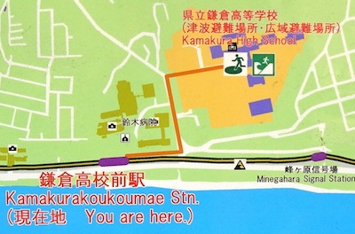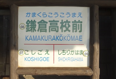ここ鎌倉高校前駅はテレビドラマや映画の撮影にも使われており有名です。鎌倉高校へは徒歩5分ほどです。高校時代に部活の対外試合でここに江ノ電で来たことがあります。懐かしく良い想い出です。今日は休日ですが部活でしょうか、何人かの高校生が下車しました。