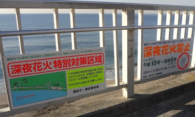 午後10時以降の深夜花火禁止区域のようです。近所の住民の方々が迷惑するのでしょう。
