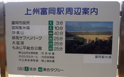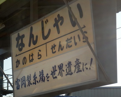 やってきた列車には「富岡製糸場と絹産業遺産群 世界遺産へ前進」と書いてあります。そしてたちまち高崎駅へ戻ってきました。