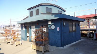 駅前トイレが電気機関車の形をしています。駅周辺をブラブラ散策した後、ホームに戻り高崎行きの列車を待ちます。