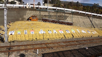 駅構内のホームから見える場所に、イベント用のイルミネーションでしょうかミニチュア列車がありました。