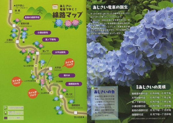 パンフレットの中はあじさいやあじさい電車に関することが詳しく書かれています。