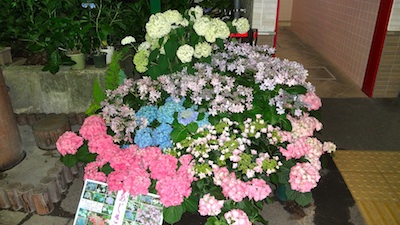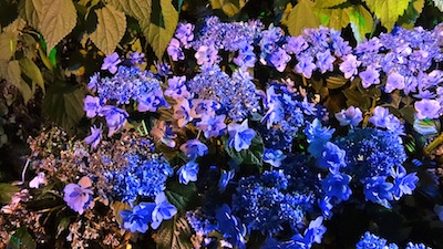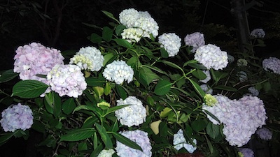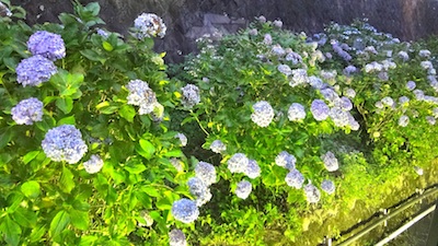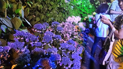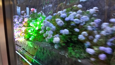 箱根湯本駅を出発してすぐ右側にライトアップのあじさいが見えてきました。