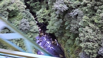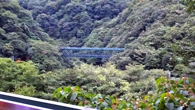 塔ノ沢駅を出発してトンネルを抜けると出山鉄橋があります。鉄橋の遙か下には早川が流れています。