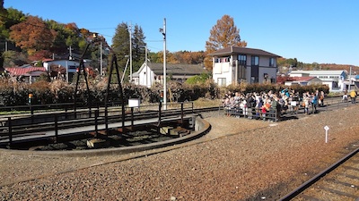 転車台での蒸気機関車の転換を見るために、多くの乗客は改札から出ないでホームや転車台のそばの見物地域に残っている。数少なくなったSLを最後まで十分に楽しんでいるようだった。