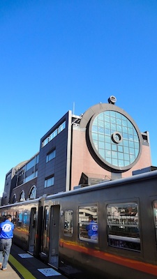 キャンペーン関係者も三両目の最後尾に陣取っているため、少し話ができたが、準備で一番大変なのはゆずを準備することだそうだ。真岡駅では8分停車する。真岡駅の駅舎はSLの形をしているユニークなもので、帰りに途中下車して寄ってみよう。