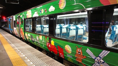 写真に撮るのを忘れましたが駅前にSLもありました。さてここからは特急南風3号に乗り阿波池田まで戻ります。この列車もアンパンマン列車でした。最後方の車両に乗り込みます。