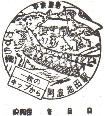 スタンプにはかずら橋と平家屋敷が描かれています。