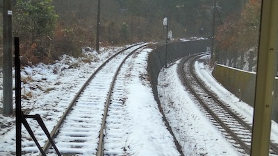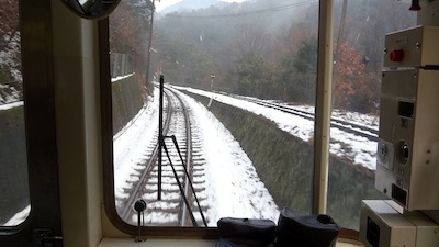 キィキィと線路を鳴らしながら高度を上げていきます。