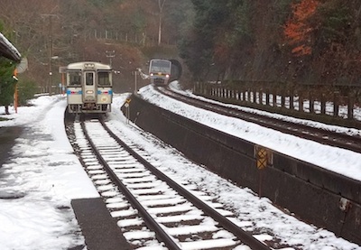 ホームは積雪があり、気をつけないと滑りやすいです。