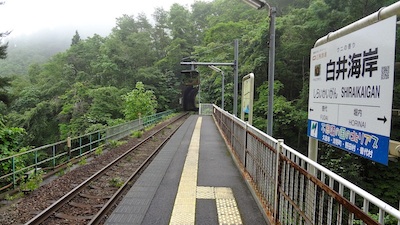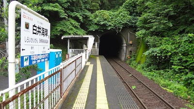 ホームの案内図を見ると、白井海岸まで徒歩3分となっています。降りていってみましょう。