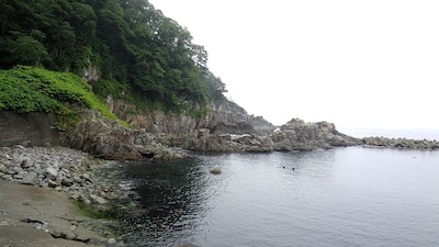 ネットの地図で見てみると、海岸には湊があり、海中の大きな岩が堤防の役割をして天然の良港だと推測できます。それにしてもよくこのような場所に駅をつくりましたね。