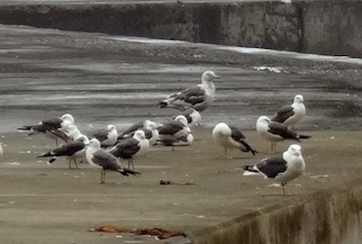 これはウミネコでしょうか、カモメでしょうか。ゆっくりと羽を休めているようです。
