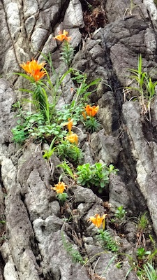 岩肌には駅の案内図にあったハマユリがいたるところで咲いています。生命力がありますね。