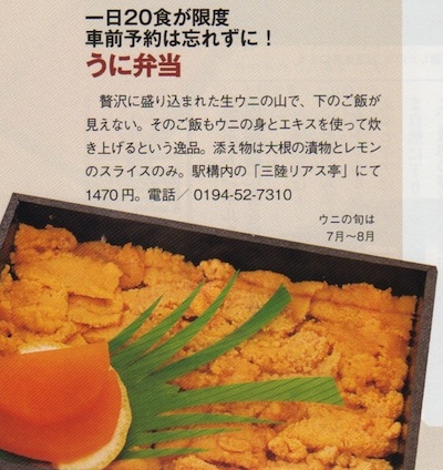 「旅と鉄道」2014年5月号の三陸鉄道特集にも、うに弁当が紹介されていました。