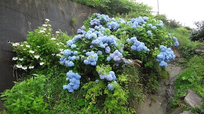 近くの民家の庭にはあじさいが綺麗に咲いていました。