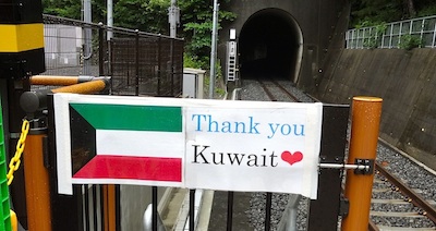 中東の産油国のクエートからの経済的支援を受けて、新しい車両を導入できました。その御礼が書いてあります。