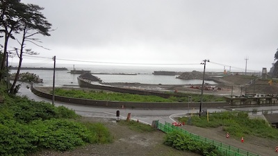 この地区では海沿いの建物は高台のみとなっていました。低地は草が生えていて手つかずでした。