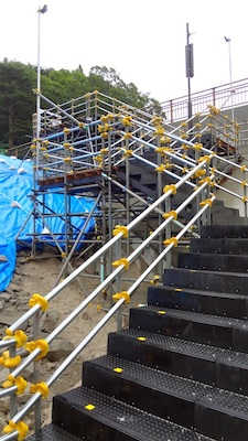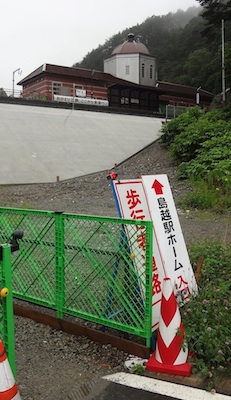 駅のホームから簡易階段を下ってきたところで、ホームを見上げてみました。この階段も来週には使われなくなるのでしょう。