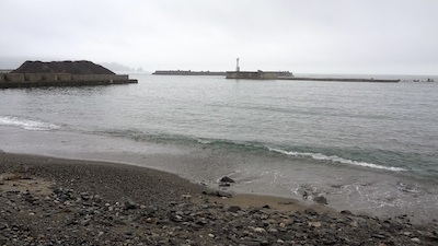 漁港としての工事中なんですが、砂浜が残っています。