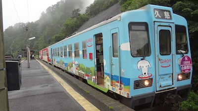 この駅で降りたのは4人。父親と男の子、そして若者です。乗ってきた列車を見送ります。