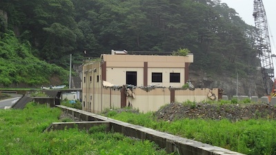 水門の近くには津波で被害を受けたままであろう建物がそのままになっていました。
