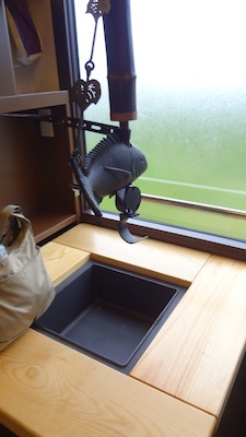 車内はこんな風になっています。くつを脱いで、掘りごたつに腰掛けるように座ります。冬はこたつになるようです。