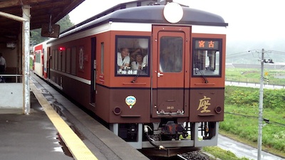 田野畑駅からは再度宮古行きの列車に乗ります。2両編成で先頭車両はお座敷列車でした。