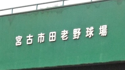 X地点からB方面を見てみます。防潮堤が二手に分かれています。右へ行けばA地点、左へ行けばB地点です。そして中央遠方の緑色のものは野球場内の構造物です。