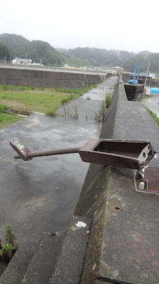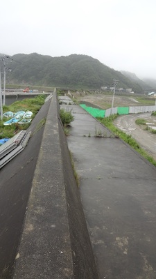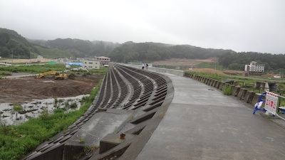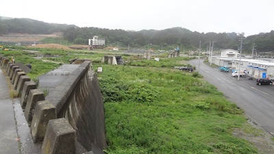 防潮堤にはところどころ階段がついており登ることができます。Xの少し南側で防潮堤に登り、B方面を撮った写真です。
