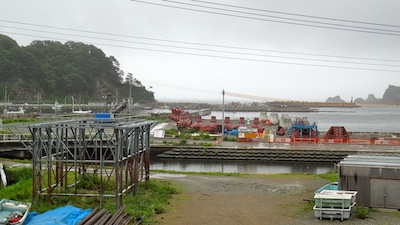 X地点から少し北(D方面)へ行ったところからC方面の写真です。プレハブが散在してますから、港は活動していることがわかります。