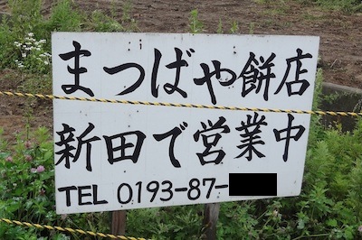 F地点の左側には「まつばや餅店 新田で営業中」という看板がありました。以前はここに餅屋さんがあったのでしょう。帰宅後に調べてみると2011年の12月には再開したようでした。