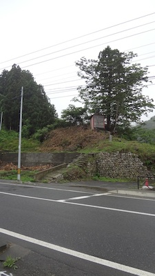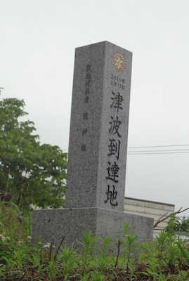 F地点の右側の壊れかけた階段を注意しながら登ってみると、田野畑駅と同じく津波到達地の石碑がありました。