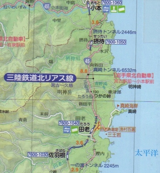 田老駅から再び久慈行きの列車に乗り、次の摂待駅へ向かいます。次の駅といっても、真崎トンネル(6,532m)内がほとんどで車窓は期待できません。