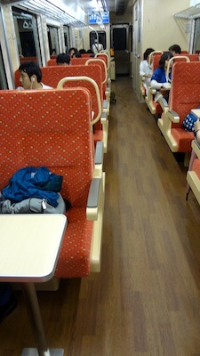 田老駅からの車両はクエートからの新型車両でした。シートも新しいものです。やっと空いている列車に乗れました。