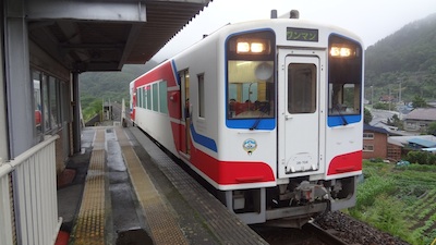 しばらくすると宮古行きの列車がやってきました。これに乗って宮古駅へ向かいます。