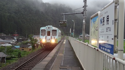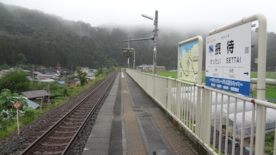 摂待駅に到着しました。乗ってきた列車を見送ります。