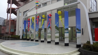落ちないにゃんこ神社のねこ達が迎えてくれます。駅舎にはさんてつグッズ売り場がありお客さんで賑わっていました。私も職場へ三陸鉄道の列車と四季をデザインしたメモ帳を買いました。