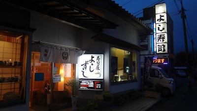 ホテルにチェックインし、フロントで聞いた評判のお寿司屋のよし寿司に立ち寄りました。