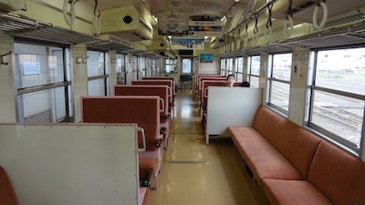 車内の様子です。やっとローカル線らしい閑散さです(笑)。しばらくすると列車は宮古駅を出発しました。