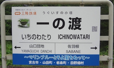 一の渡駅の駅名標です。愛称は“うぐいすの小径”です。なかなか綺麗なネーミングです。