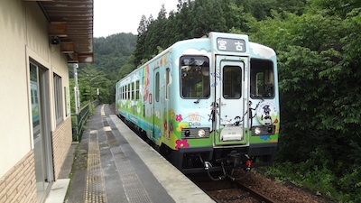 山口団地駅を出てからしばらくすると、猿峠トンネル(2,870m)に入り、そこを出たところが一の渡駅です。