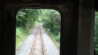 区界駅を出てから最後尾から車窓を楽しみます。