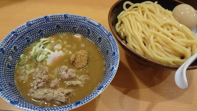 興奮している自分がわかるので、自分で自分を落ち着かせていると、お店の人が「前の人が食券を買ったら、順番に食券を買ってお待ちください」と言いました。お勧めは豚玉つけめんだとも付け加えます。素直な私は“豚玉つけめん”のボタンを押しました。1,080円でしたが、これも東京価格と思って諦めましょう。